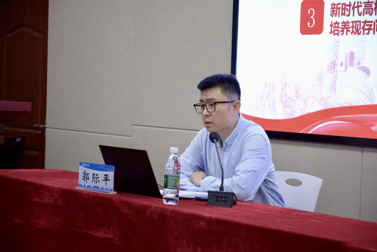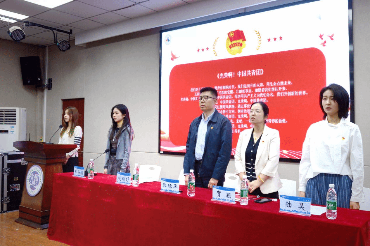 仪式在中国共青团团歌中圆满结束。随后郭际平从青年马克思主义培养工程概述、新时代青年学生所面临的机遇与挑战、高校学生骨干培养现存问题以及青年学生骨干的实现路径四个方面为青马班学员讲授第一课。