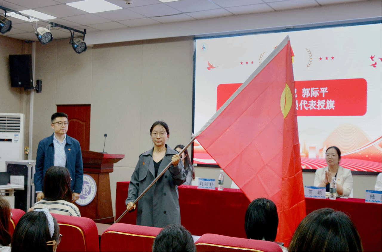 开班仪式在雄壮的国歌声中拉开帷幕。赵婧舒围绕本期“青马工程”的培训目标、课程体系及培养方向展开详细介绍,强调学院将通过理论与实践相结合的模式,助力青年学子筑牢信仰之基,成长为新时代马克思主义的坚定践行者。陆昊宣读青马班纪律管理规定,号召全体学员以严谨的态度投入学习,凝聚集体力量。在庄重的授旗环节中,郭际平将象征责任与使命的“青马工程”旗帜授予学员代表2024级俄语专业宋昕蕊,鲜红的旗帜传递着薪火相传的信念,激励青年勇担时代重任。