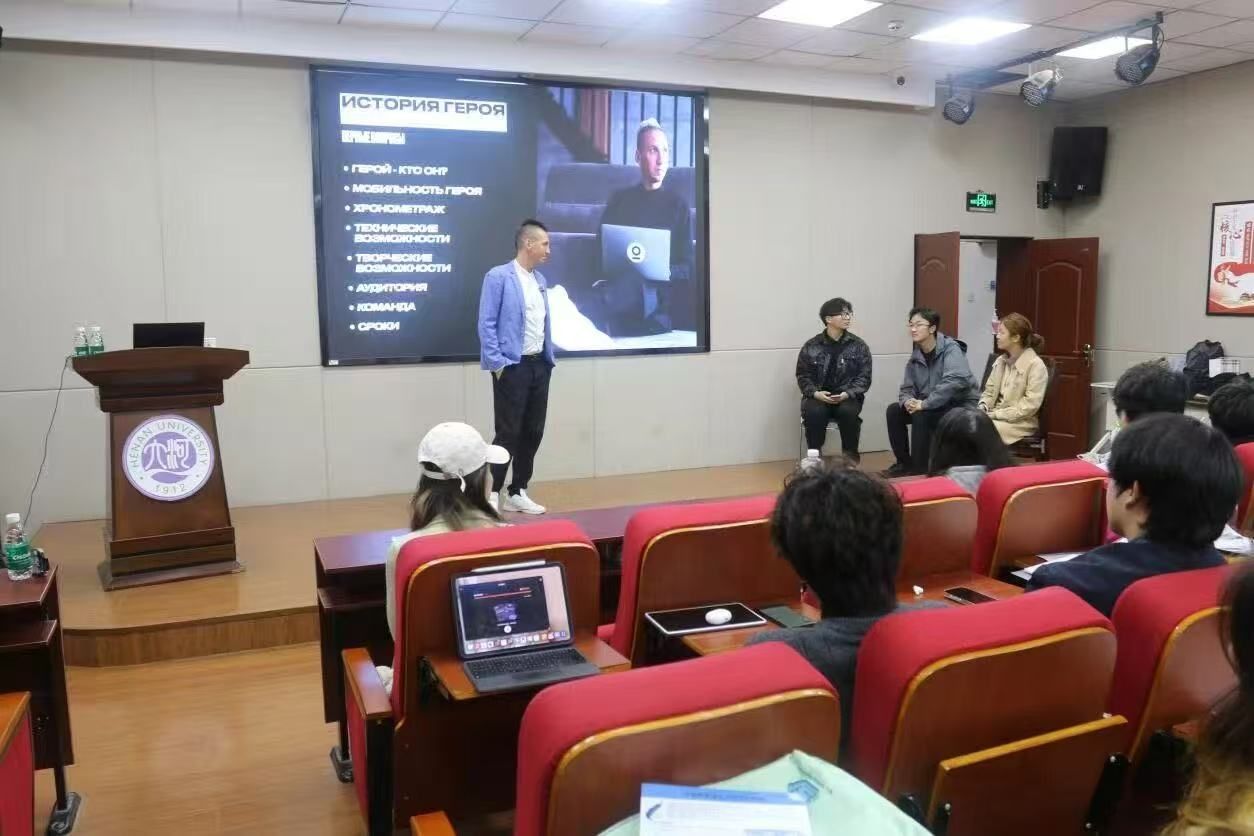10月17日下午,白俄罗斯国立大学新闻学副教授、纪录片导演、脱口秀主持人奥列格·特里丰诺夫博士应邀为21点规则 师生带来一场题为“人物传记拍摄与剪辑”的专题讲座,呈现了一场思想与技艺交融的学术盛宴。学院教师代表、播音与主持艺术专业学生近200人聆听讲座。