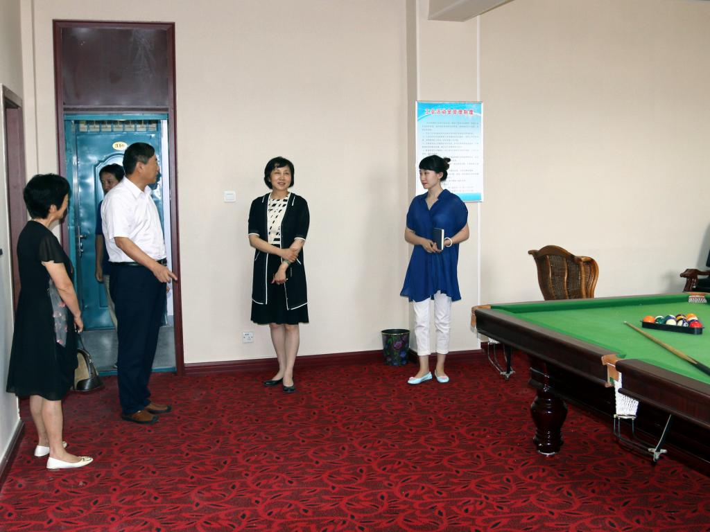 会后,学院领导班子带领调研组一行参观了学院工会活动室、教工休息室、健身室和茶歇室等工会场所及设施。
