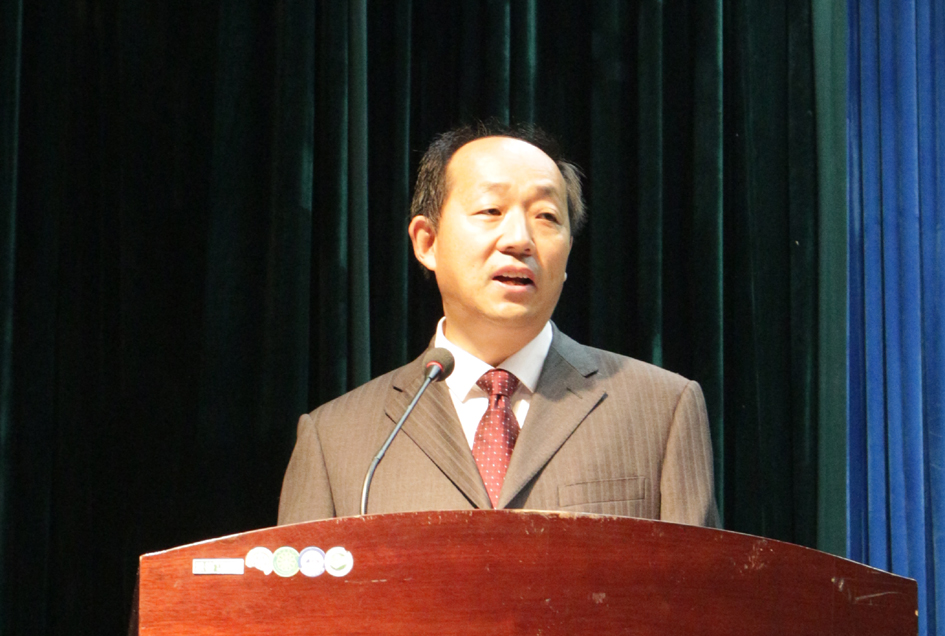 院长宋战利代表学院讲话,对2017级新生的到来表示欢迎,祝贺大家在军训歌咏比赛中取得的骄人成绩。宋院长指出,在100多年的办学历程中,河南大学始终秉承“明德新民、止于至善”的校训,形成了“团结、勤奋、严谨、朴实”的校风和“自强不息、百折不挠”的大学精神。同学们要牢记校训,用其激励自己,要求自己。大家要在学好专业的同时,注重了解时事、关心国事,深入学习和领会“一带一路”倡议等国家战略,做改革开放的促进派、实干家。宋院长叮嘱大家牢固树立安全意识,注意交通安全、用电安全、财产安全,健康、平安、快乐地开创美好的大学生涯,努力实现自己的人生理想。