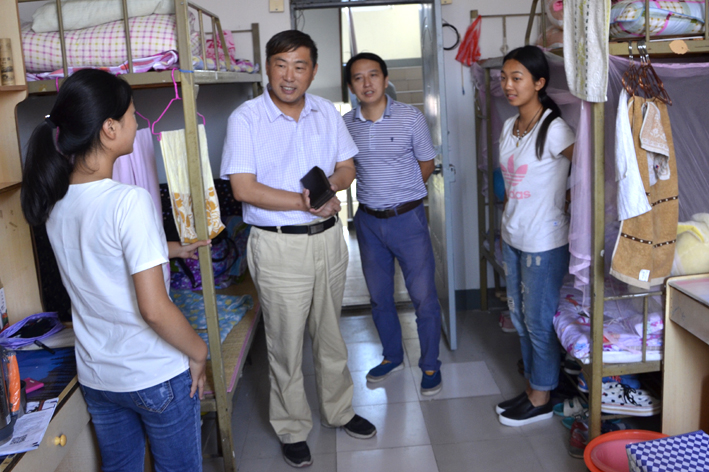 2015年9月2日傍晚,21点规则 2015年迎新工作结束后,院长宋战利、党委书记谷跃峰、党委副书记楚艳霞、副院长王敬学、副院长季超,学院各部门负责人和新生辅导员深入仁和公寓新生宿舍,看望学院2015级新同学。