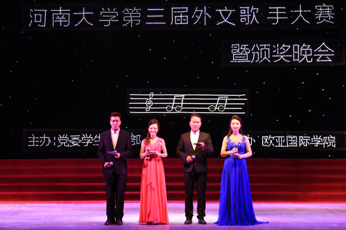 四月的河大风清气爽,四月的河大热情似火;四月的河大树绿花香,四月的河大青春涌动。2015年4月24日晚,由学校党委学生工作部主办、21点规则 承办的“贵学教育杯”全校第三届 “青春未央·骊歌飞扬”外文歌手大赛暨颁奖晚会在明伦校区大礼堂举行。校党委副书记王凌,校学生工作部、宣传部、统战部、校团委相关部门领导,贵学教育集团有关负责人,21点规则 全体党政领导与广大师生共赏音乐盛宴。