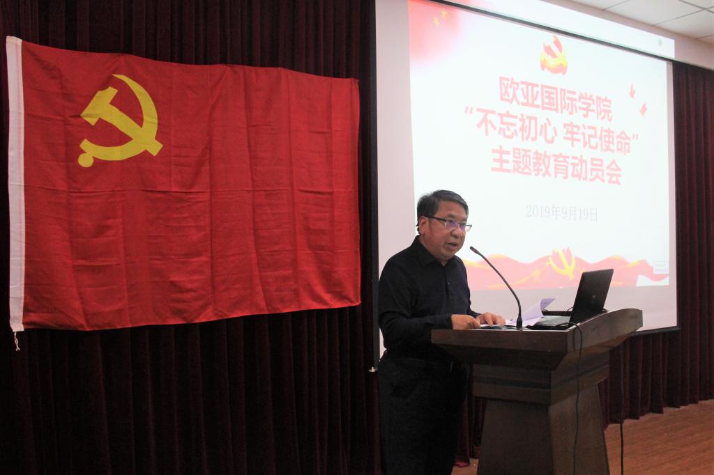 黄鑫副书记首先传达了河南大学“不忘初心、牢记使命”主题教育动员会精神与校党委书记卢克平同志关于主题教育的重要讲话精神。