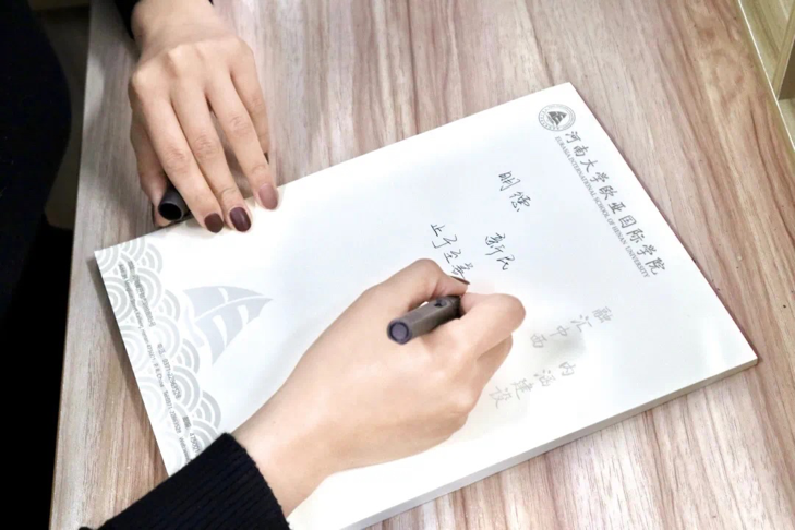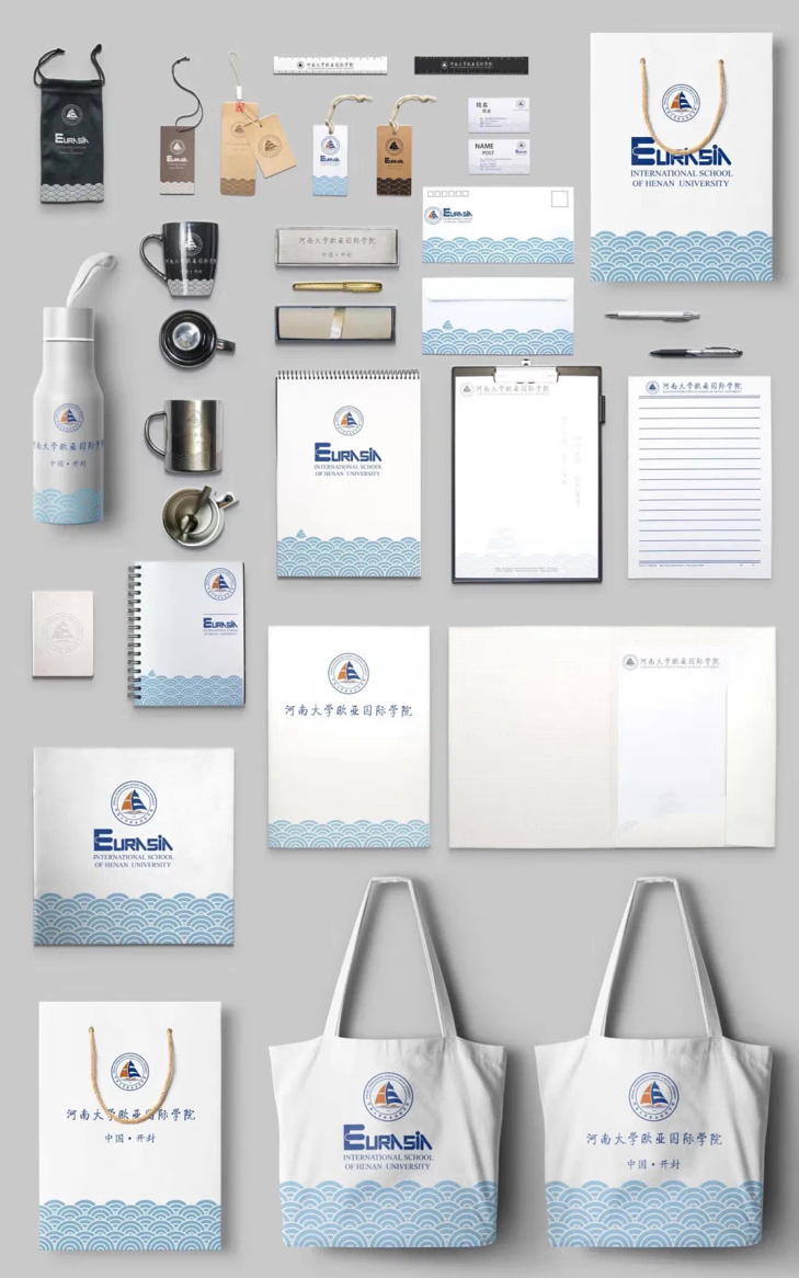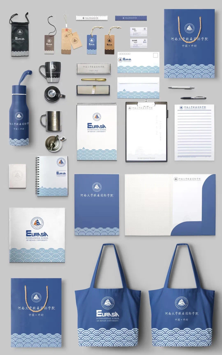 这些文创产品是经过学院百般斟酌和精心研究的,其中的设计理念是非常有深意的。这次的文创产品设计灵感来源于欧亚院徽,院徽中水波和书籍的融合,体现出知识的海洋理念;水波之上的笔和船以及欧亚象形字母的融合,代表了游历在欧亚之间促进文化交流的国际之船,相互交流,促进共同发展。