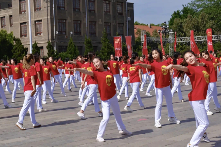 为庆祝中国共产党成立100周年,河南大学组织2300名学生参加了百城联动/百首原创/百万同跳大型排舞展演活动。