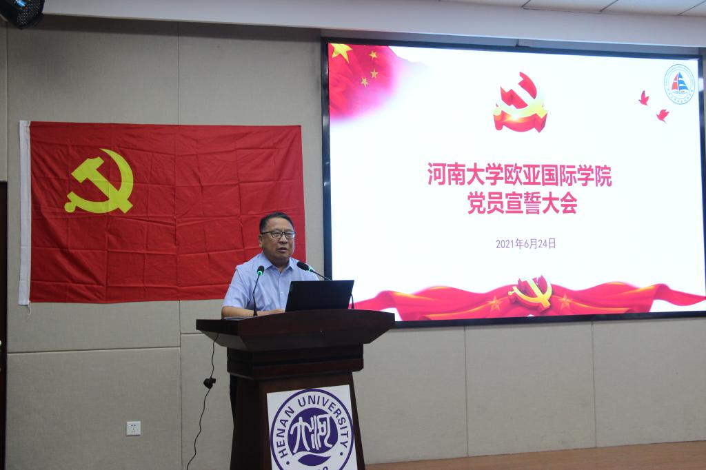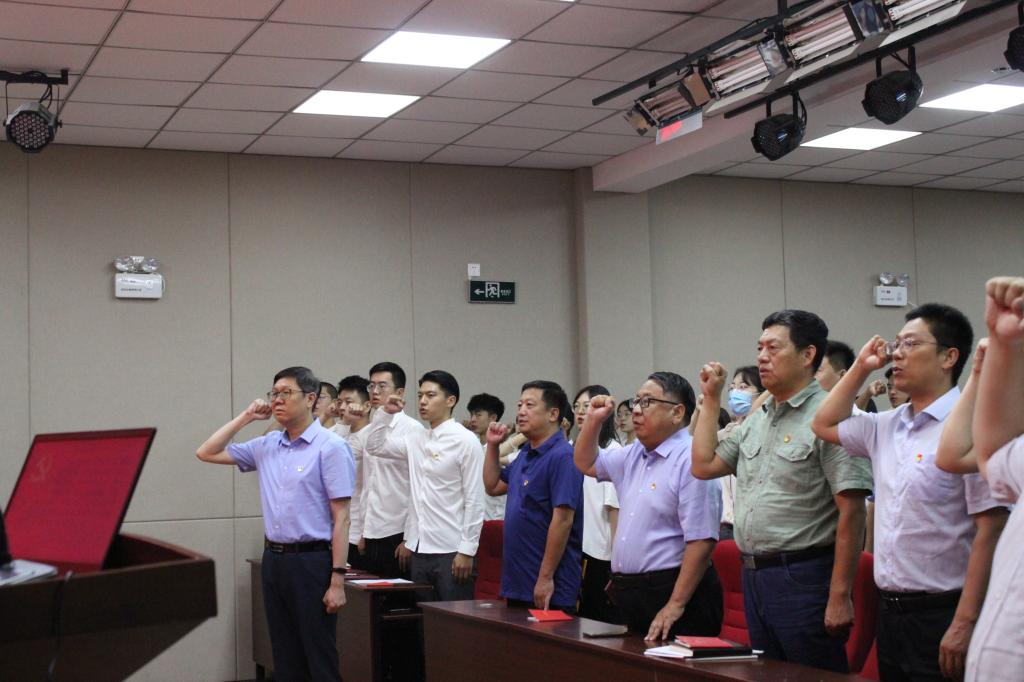 宿云龙同志首先宣读了本年度新发展党员名单。学院党委副书记黄鑫带领学院全体党员面向党旗庄严宣誓。