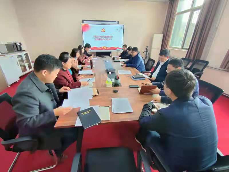 学院党委副书记、院长赵成新带领同志们学习了河南省委书记楼阳生两次到河南大学调研座谈相关会议精神,重点学习了楼阳生书记就河南省“双一流”建设和高等教育发展强调的六点意见以及在我校郑州校区调研“双一流”建设工作时提出的指导意见,传达了河南大学党委书记卢克平、校长宋纯鹏在“振兴百年名校、建设一流大学”论坛上的讲话精神。他强调,学院要抓住省委关于高校“双航母”战略的宝贵机遇,提高中外合作办学质量,开拓国际视野、加强内涵建设、突出特色发展,为河南大学“双一流”建设做出应有的贡献。