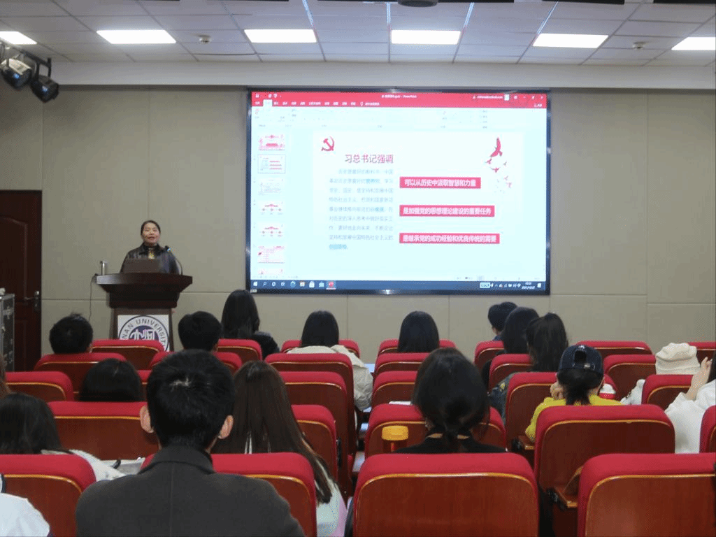 学生第一党支部书记彭韬为学员们详细解读了党的光辉历史。同学们对中国共产党筚路蓝缕、艰苦斗争、由小到大、由弱到强并带领中国人民站起来、富起来、强起来的革命史与社会主义建设史有了更加深刻的认识,被老一辈无产阶级革命家抛头颅、洒热血的革命精神与坚定的共产主义信仰所深深感动。
