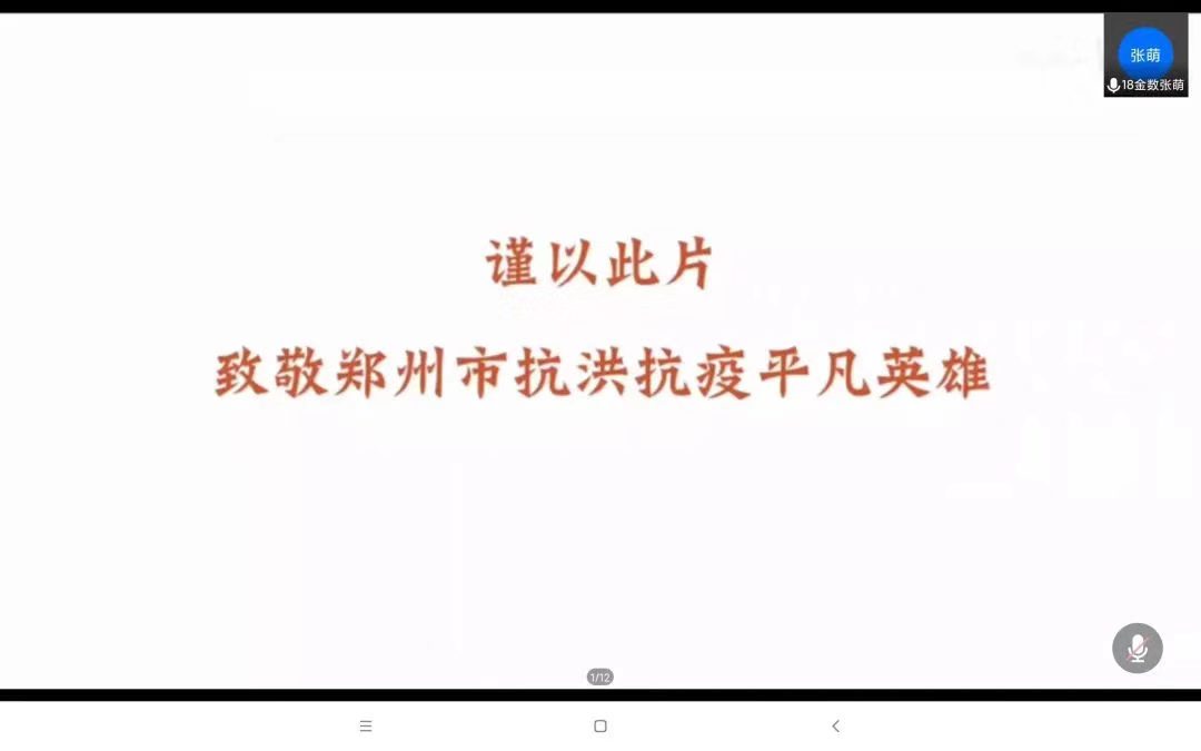 最后进行分享的是2020级金融数学专业的管如意,他也分享了自己在郑州参与的社区工作,在这段经历中,他看到社区工作者坚守自己的岗位,身边的老党员同志身先士卒,为年轻的同志们做出了榜样,用行动告诉大家什么是担当的重量,用意志告诉大家什么是党员的力量。通过全民一心的努力,抗洪抗疫的工作终得成效。在这个暑期经过的志愿经历,让他和身边很多同志都从中汲取了抗洪抗疫的精神力量,更好地树立了为人民服务的意识。