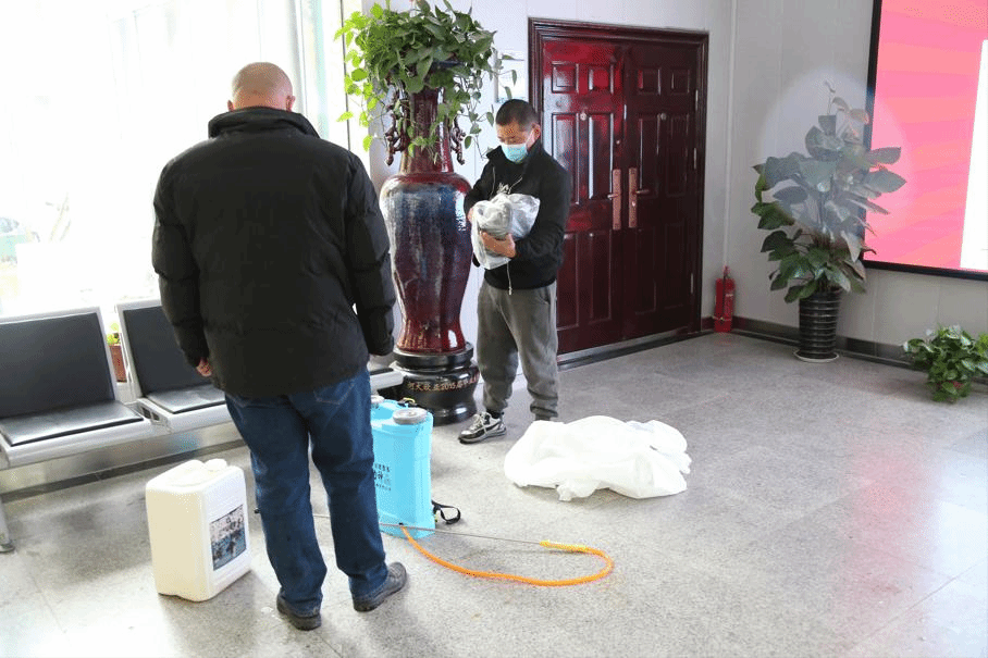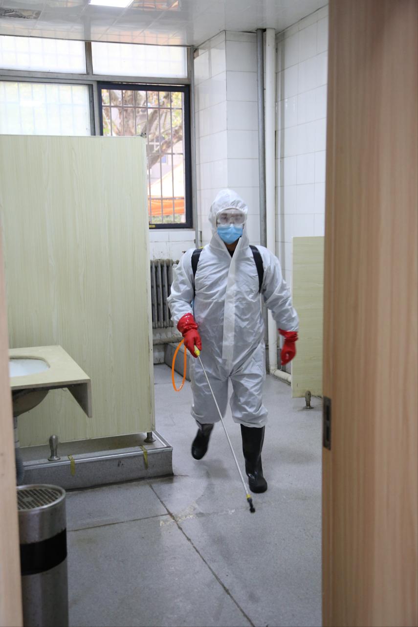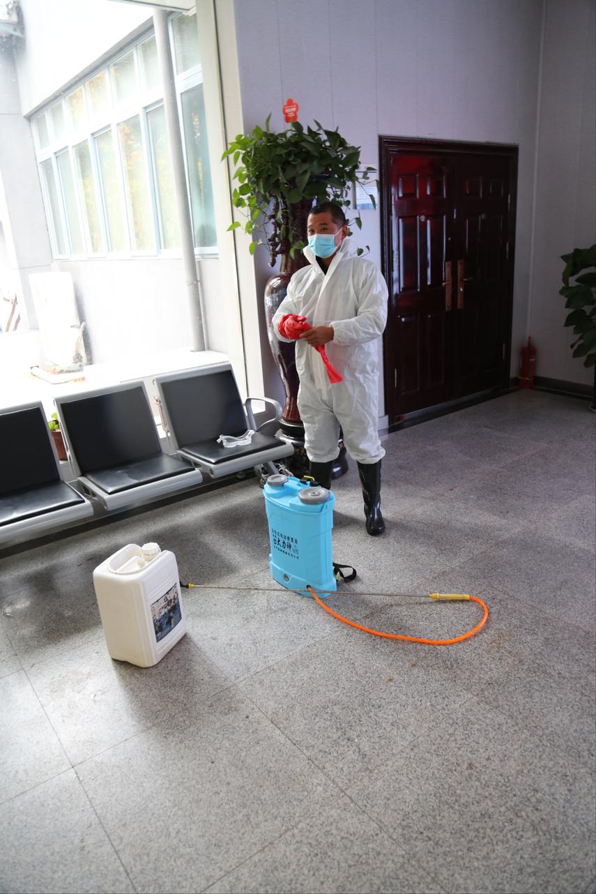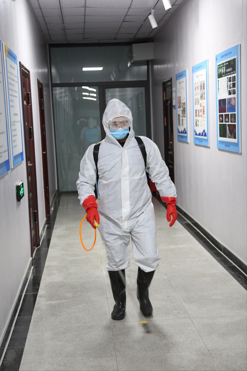 逐层进行消毒喷洒,细致到走廊的边边角角