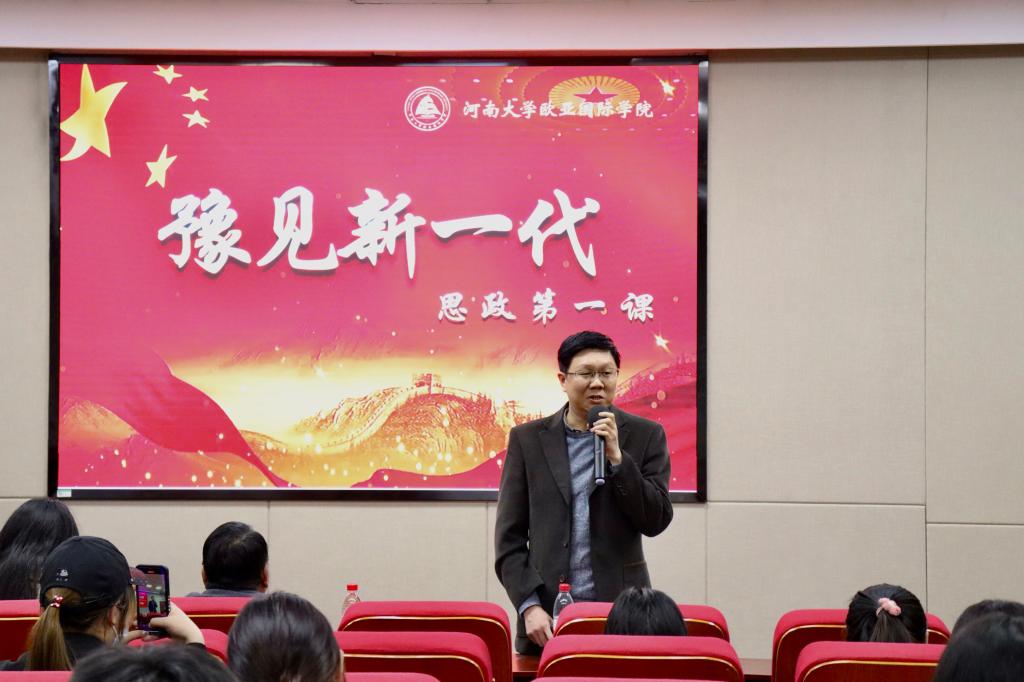 为深入贯彻习近平总书记关于“大思政课”建设的重要指示精神,全面落实《关于新时代加强和改进思想政治工作的意见》,落实中共河南省委教育工委、河南省教育厅的安排部署,3月10日下午,21点规则 结合“豫见新一代”主题教育实践活动在学院二楼报告厅开展“思政第一课”。学院党委书记李卫国、党委副书记黄鑫、团委副书记李琳出席活动。
