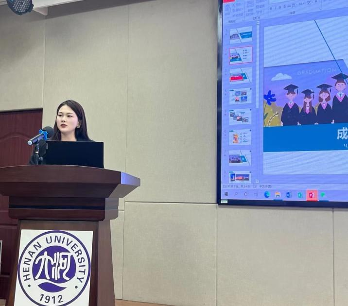 在课堂上,黄老师带领同学们以小组汇报的形式,将同学们在课下准备好的俄语自我介绍以及制作的PPT进行展示。目的是为了检测同学们对俄语的运用能力以及俄语的发音情况。