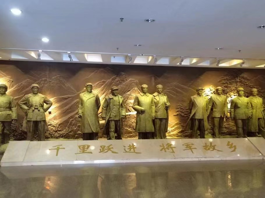 7月25日下午,团队成员来到鄂豫皖革命纪念馆参观学习。坐落在信阳市北京路和107国道交汇处的鄂豫皖革命纪念馆以红色为基调,以千里跃进大别山的“千”字为建筑造型,以百位将军雕像和鄂豫皖红色根据地地图、三十万烈士英名为墙面浮雕,展现信阳厚重革命历史。