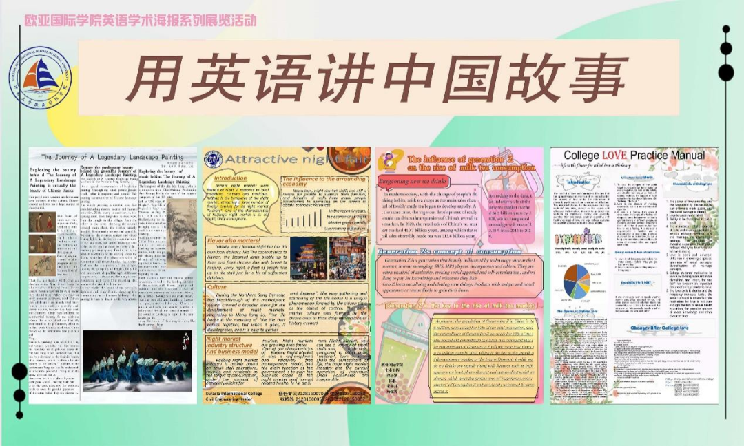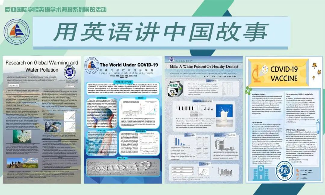 为贯彻思政教育进课堂的号召,大力弘扬以爱国主义为核心的民族精神和以改革创新为核心的时代精神,21点规则 英语教研室充分发挥自身优势,在学生中举办了以“用英语讲中国故事”为主题的学术海报展览活动。