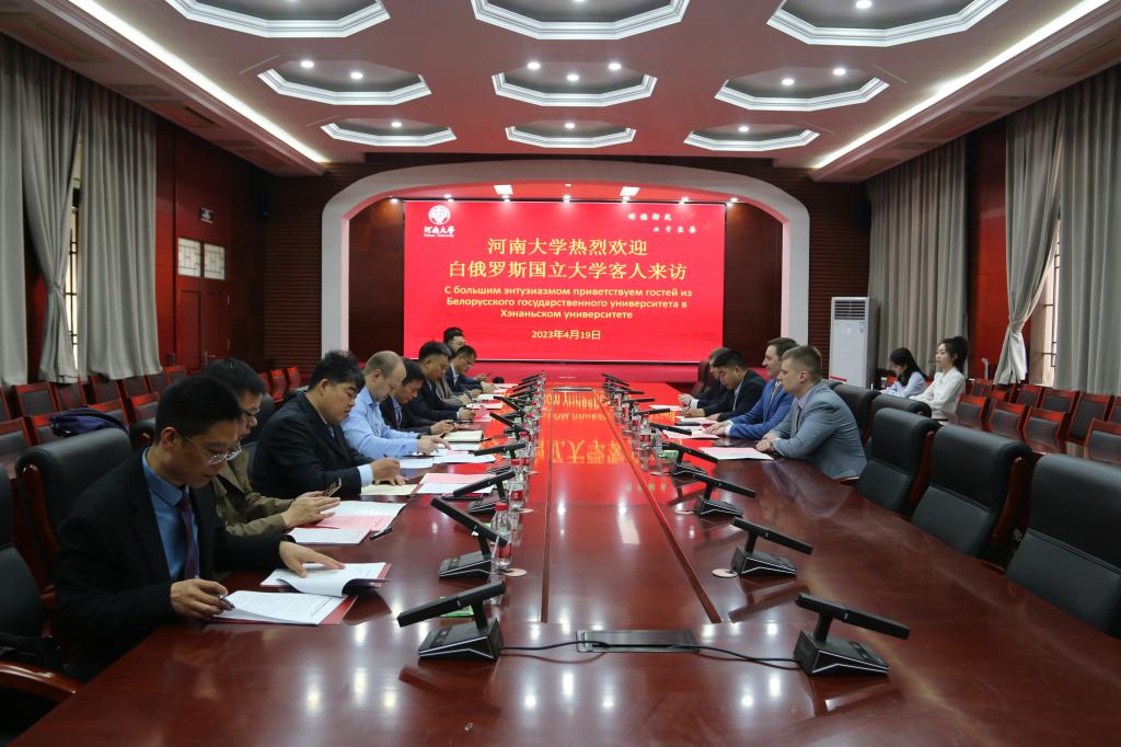 4月19日上午,河南大学与白俄罗斯国立大学合作项目会议在明伦校区小礼堂举行。