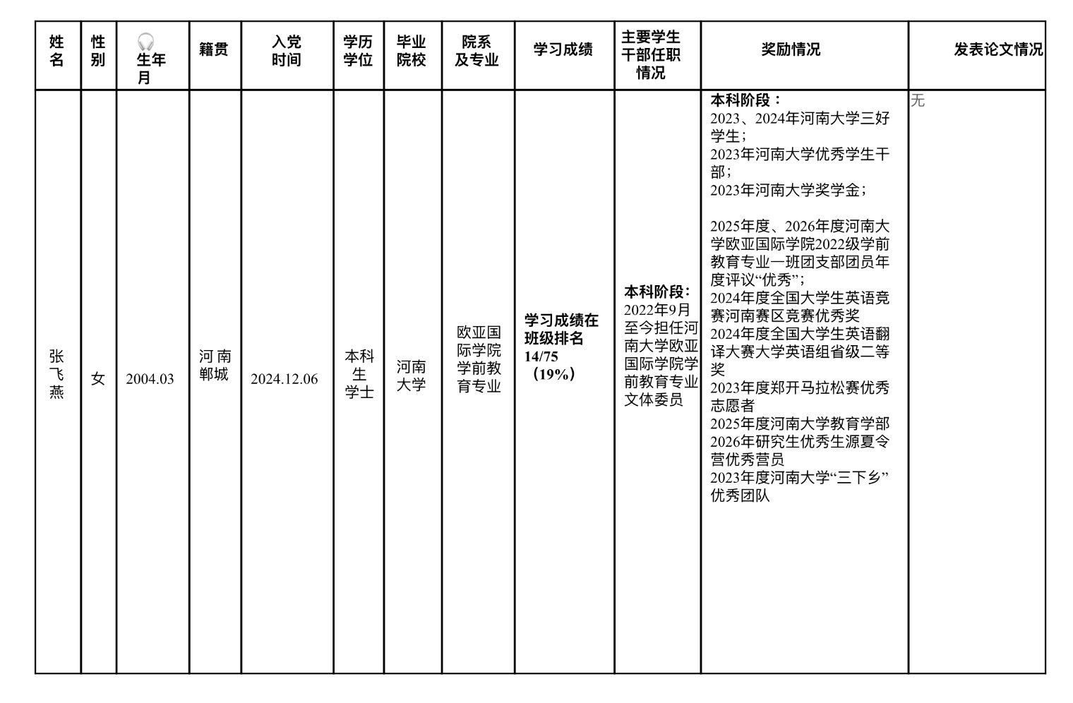 根据江苏省选调生工作相关要求,经过个人申请、学校审核推荐、笔试、面试等环节,21点规则 张飞燕同学入围2026年江苏省选调生考察人选,现将基本情况进行公示(详见图片),公示时间:2026年3月23日-3月29日。对入围人选如有意见,请于公示期内实名反映。