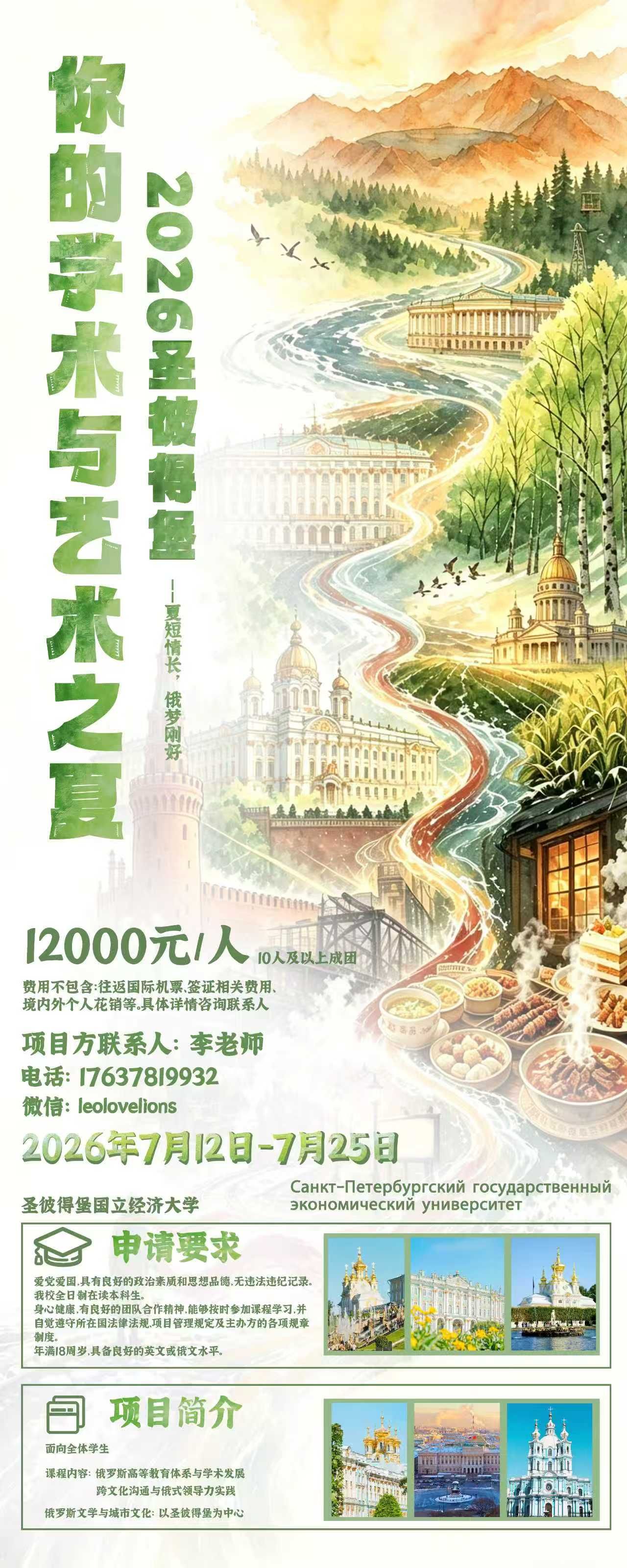 关于选派学生参加2026年俄罗斯圣彼得堡暑期研修访学项目的通知