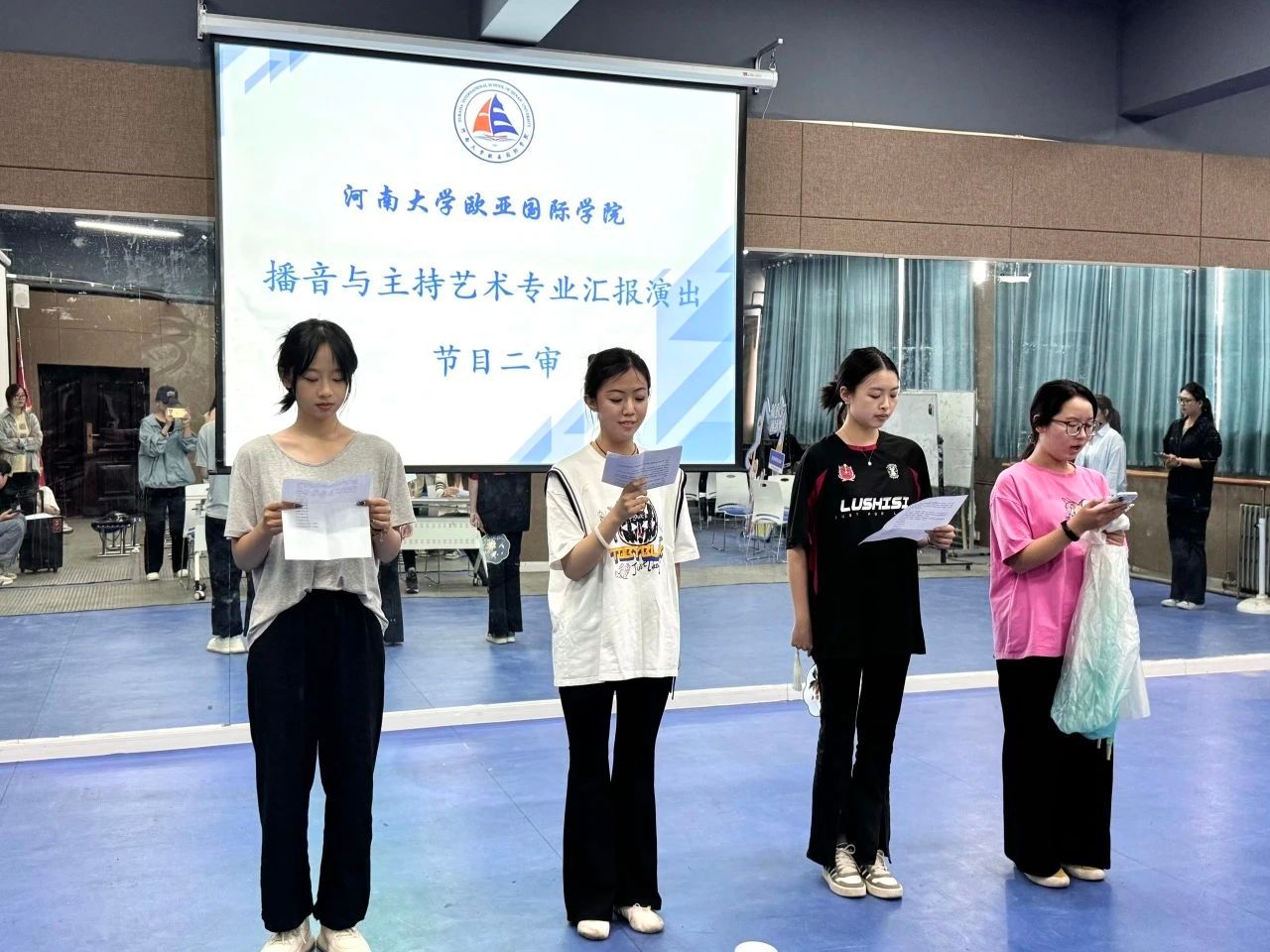 为全力筹备“放飞”汇报演出,确保演出以最佳状态精彩呈现,学院于4月26日在一楼活动室进行节目二审。院党委副书记贺颖、指导老师金冰冰、郭泽瀚、辅导员陈萌、赵婧舒参与此次节目二审。