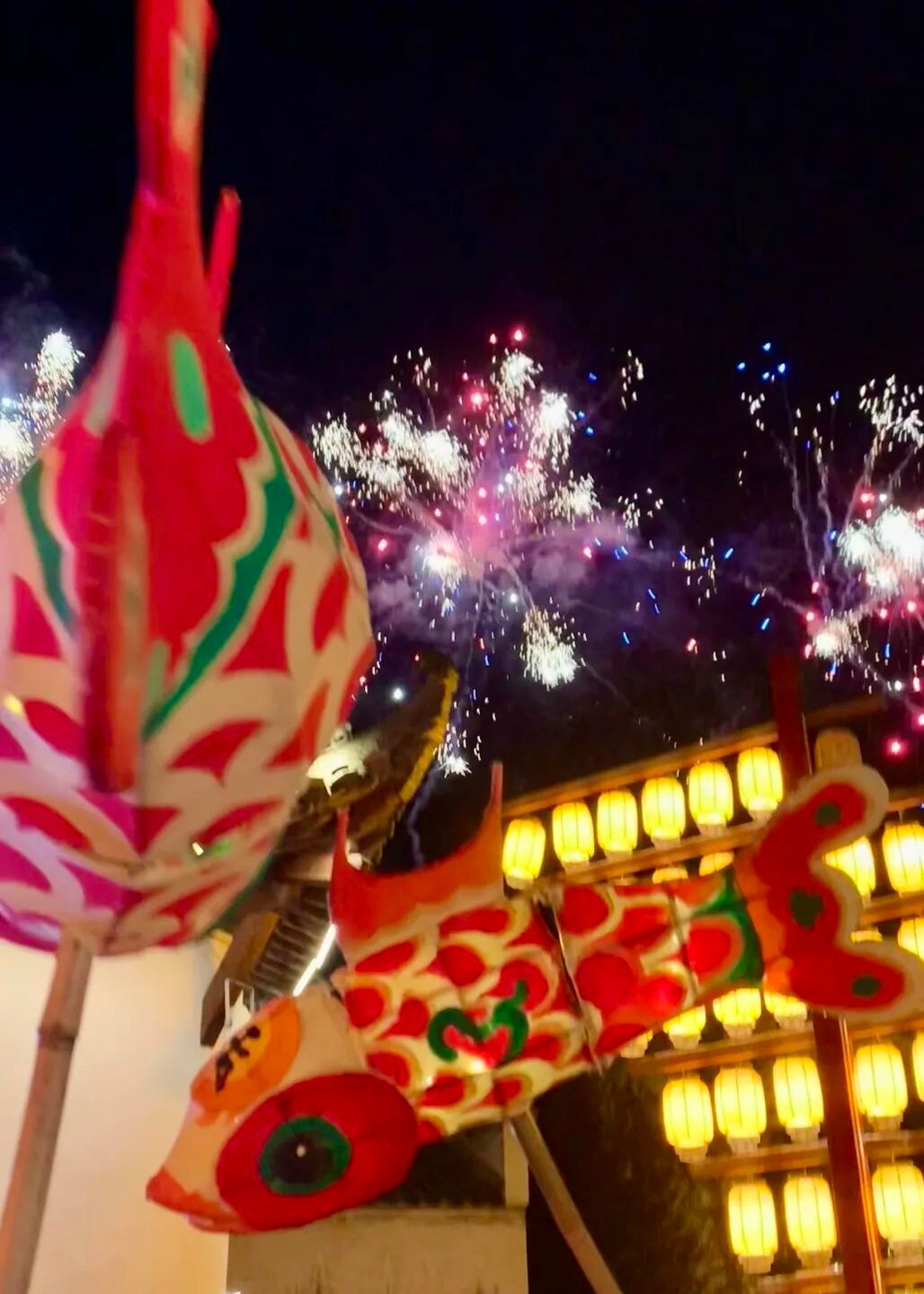 清溪绕村流,古宅映疏林。秀里村宛如一幅立体的徽州水墨画,古桥横卧碧波,竹影婆娑映墙,明清民居错落有致,炊烟袅袅间尽显田园雅趣,在烟花的衬托下,非遗鱼灯更显魅力,这里没有喧嚣扰攘,只有白墙黛瓦与青山绿水的和谐共生,自然光影与古村肌理交织,为设计创作赋予清新淡雅的东方意境。